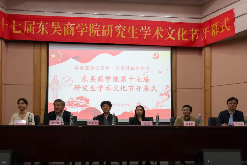 2021年4月29日下午6时30分,东吴商学院第十七届研究生学术文化节开幕仪式在天赐庄校区财科馆二楼学术报告厅成功举办。苏州大学党委研究生工作部部长吴雪梅老师、苏州大学研究生管理办公室主任赵一强老师、东吴商学院院长冯博老师、东吴商学院专职纪检委员马龙剑老师、苏州大学研究生院研究生就业指导科胡玮老师、东吴商学院专职组织员缪爱国老师、苏州大学研究生会执行主席衣俊达以及部分兄弟学院研会主席应邀出席本次开幕式。开幕式由东吴商学院研究生会主席陶翰林主持。