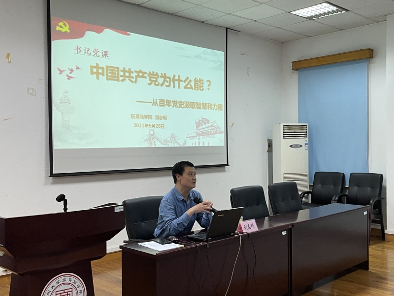 为庆祝中国共产党建党100周年,积极响应习近平总书记在党史学习教育动员大会上提出的“学史明理、学史增信、学史崇德、学史力行”号召,提升研究生党员的党性修养,5月26日中午12:00,学院党委书记刘志明老师在财科馆105为全体研究生党员上了一堂以“中国共产党为什么能?”为主题的党课。